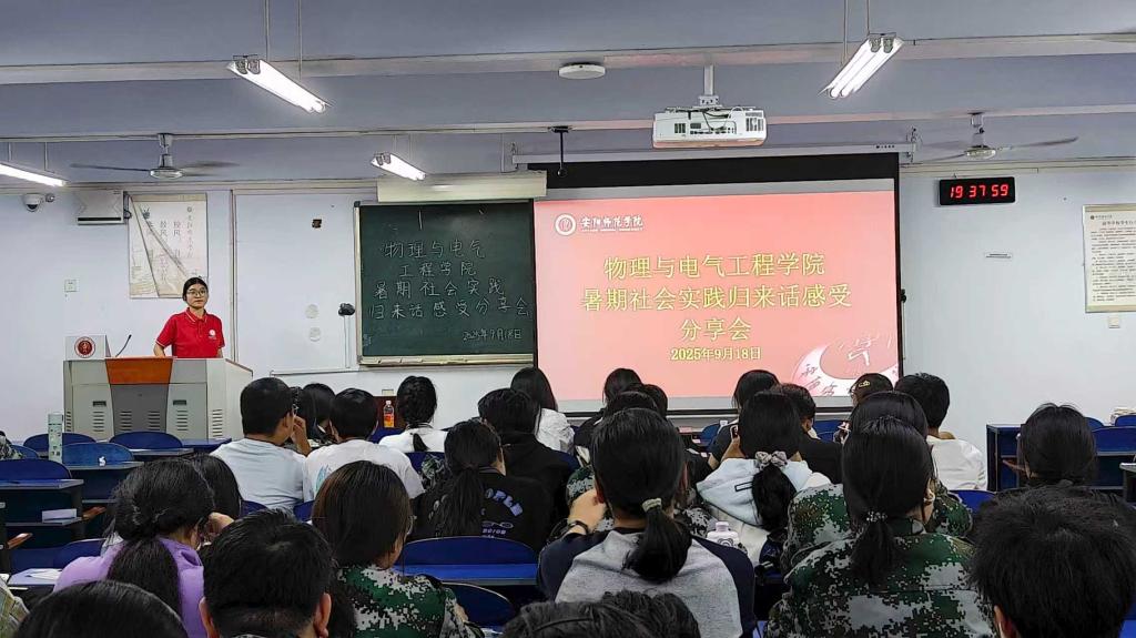 2025年9月18日下午,我院在“和展楼”B303、B307、B308、B402、B502教室成功举办“暑期社会实践归来话感受”分享会。分团委书记袁梦、2025年暑期社会实践团队成员以及2025级全体学生共同参加了本次活动。