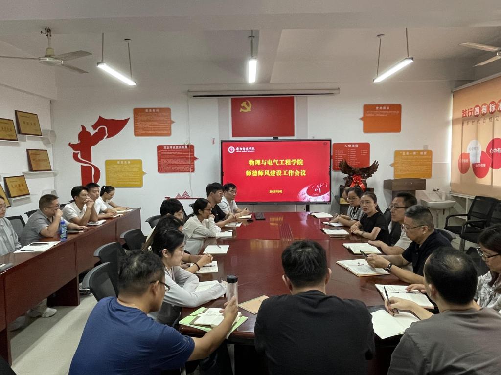 在全国第41个教师节来临之际,9月8日下午,我院在和钧楼219会议室召开“弘扬教育家精神 争做新时代高素质专业化教师”师德师风建设工作会,学院领导班子全体成员、各系主任、青年教师代表参加会议。会议由副院长丁电宽主持。