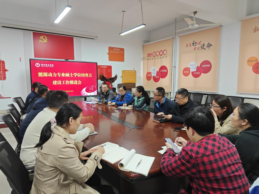 10月10日下午,我院在219会议室召开能源动力硕士专业学位培育点建设工作推进会。学院全体领导班子成员及能源动力硕士专业学位培育点骨干教师参加会议。