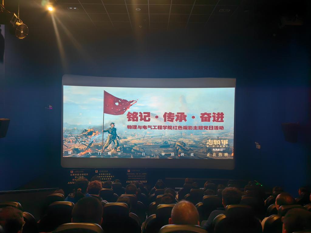 为庆祝中华人民共和国成立76周年,弘扬伟大的抗美援朝精神,持续深化爱国主义教育,我院于10月10日下午组织开展了“铭记·传承·奋进”主题党日活动,学院师生党员、发展对象、积极分子及党外人士代表等集中观看了爱国主义影片《志愿军3:浴血和平》。