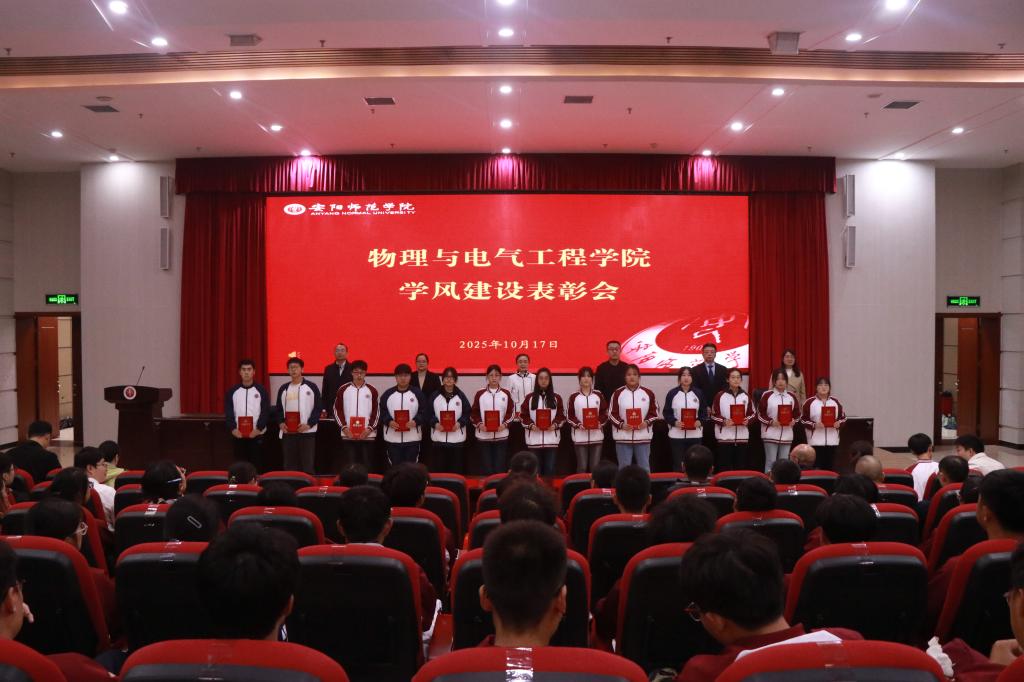 与会领导为受表彰的先进个人和“物电榜样”优秀学子宣讲团成员颁发荣誉证书、聘书;教师代表龙晨博士,学习标兵2022级物理学专业二班宋佳欣同学,2025级光电信息工程一班张英英同学及2025级电气工程及其自动化一班李亚坤同学分别作为教师代表、在校生代表、研究生新生代表、本科新生代表发言。
