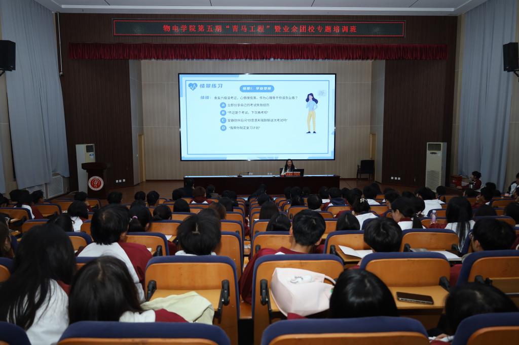 张爱善以“守正创新做好网络新闻舆论工作”为题,从网络新闻舆论工作的重要性、形势研判、方法路径三方面系统阐述,结合典型案例,强调提升精准预判、快速响应、融合表达等能力,助力构建清朗校园舆论生态。赵江涛以“守正创新 助力学生成长”为题,从“如何看待学生工作、如何做好学生工作、如何成长为一名优秀的辅导员、如何形成一支优秀的团队”四个方面,结合自身对学生工作的认识思考与实践感悟,提出路径建议和方法指导。王铮以“科创筑梦·强国有我”为题,系统介绍了“挑战杯”、“中创赛”的基本概况,并从作品选题、参赛机制、组织保障等方面进行了全面解读与实操指导。焦安琴以“朋辈赋能·凝心聚力”为题,聚焦常见心理问题识别与应对,综合运用案例分析、互动交流等方式,系统传授了专业知识及应对策略。