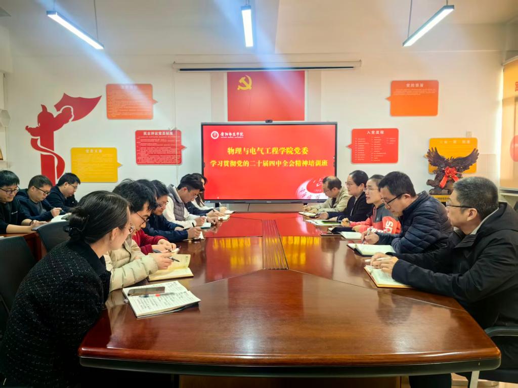 为深入学习贯彻党的二十届四中全会精神,根据学校《关于开展科级以下干部党员学习贯彻党的二十届四中全会精神培训班的通知》要求,物理与电气工程学院高度重视、周密部署、扎实推进,切实抓好学习培训各项工作。